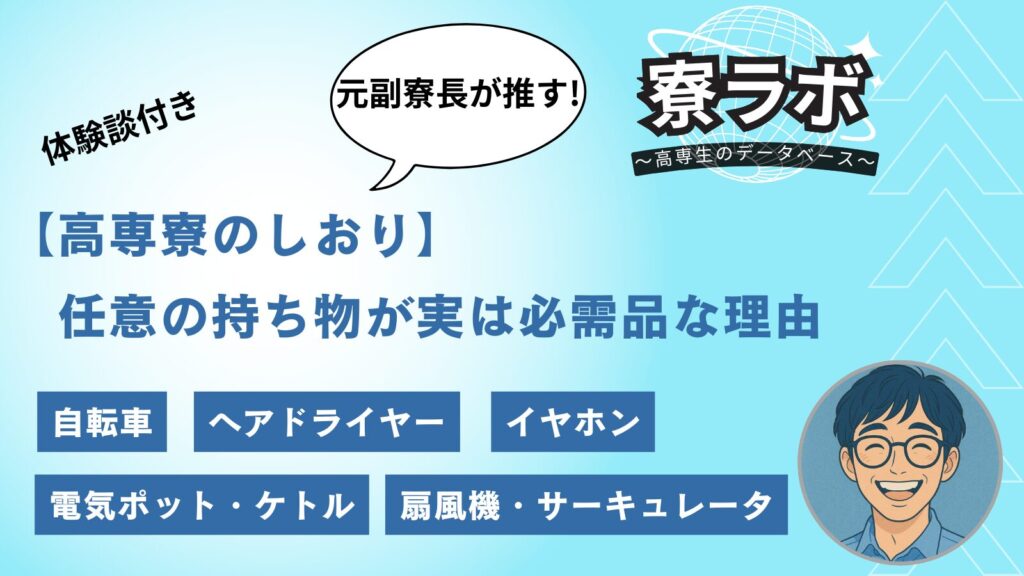 【高専寮生活の盲点】任意の持ち物が実は必需品|元副寮長が推すアイテム5選!