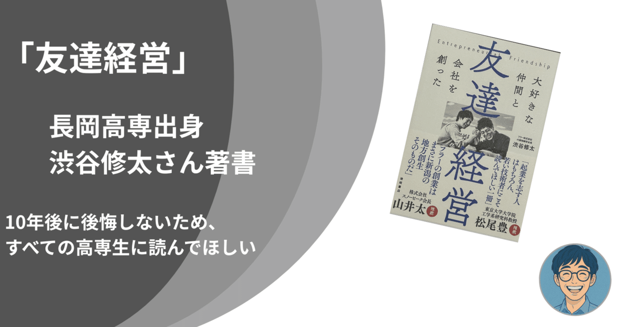 職場の外に目を向けても、高専生の強い絆は変わりません。高専人会の代表理事である渋谷修太さんの著書「友達経営」でも、高専生の高い結束力と厚い信用について記されています。特に印象的なのが、朝日メディアラボベンチャーズ代表の野澤博さんとシリコンバレーで出会ったエピソードです。